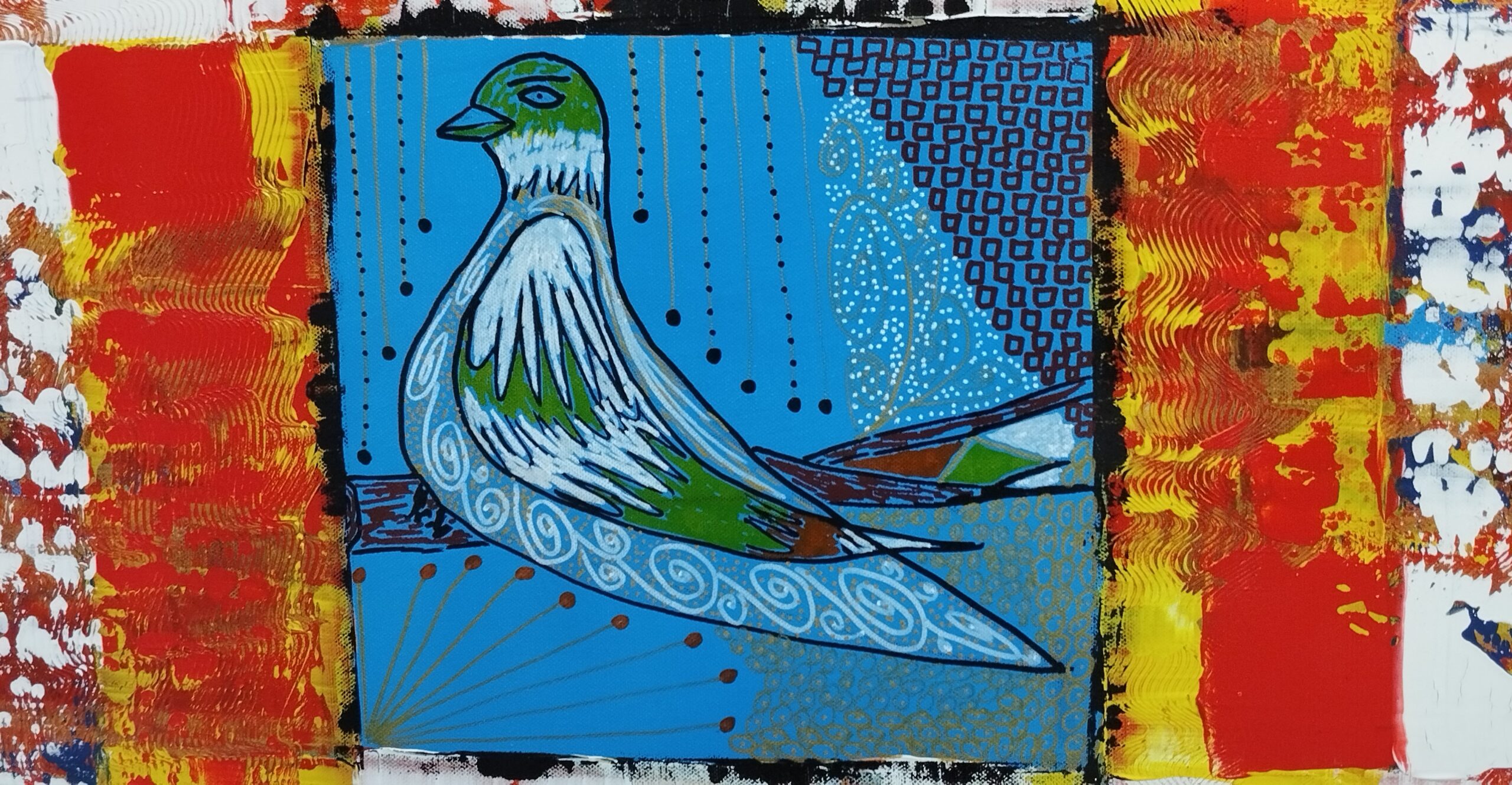 Taubenfenster Größe: 100cm x 100cm x 4cm (HxBxT) Mischtechnik Abstrakt Acryl auf Leinwand